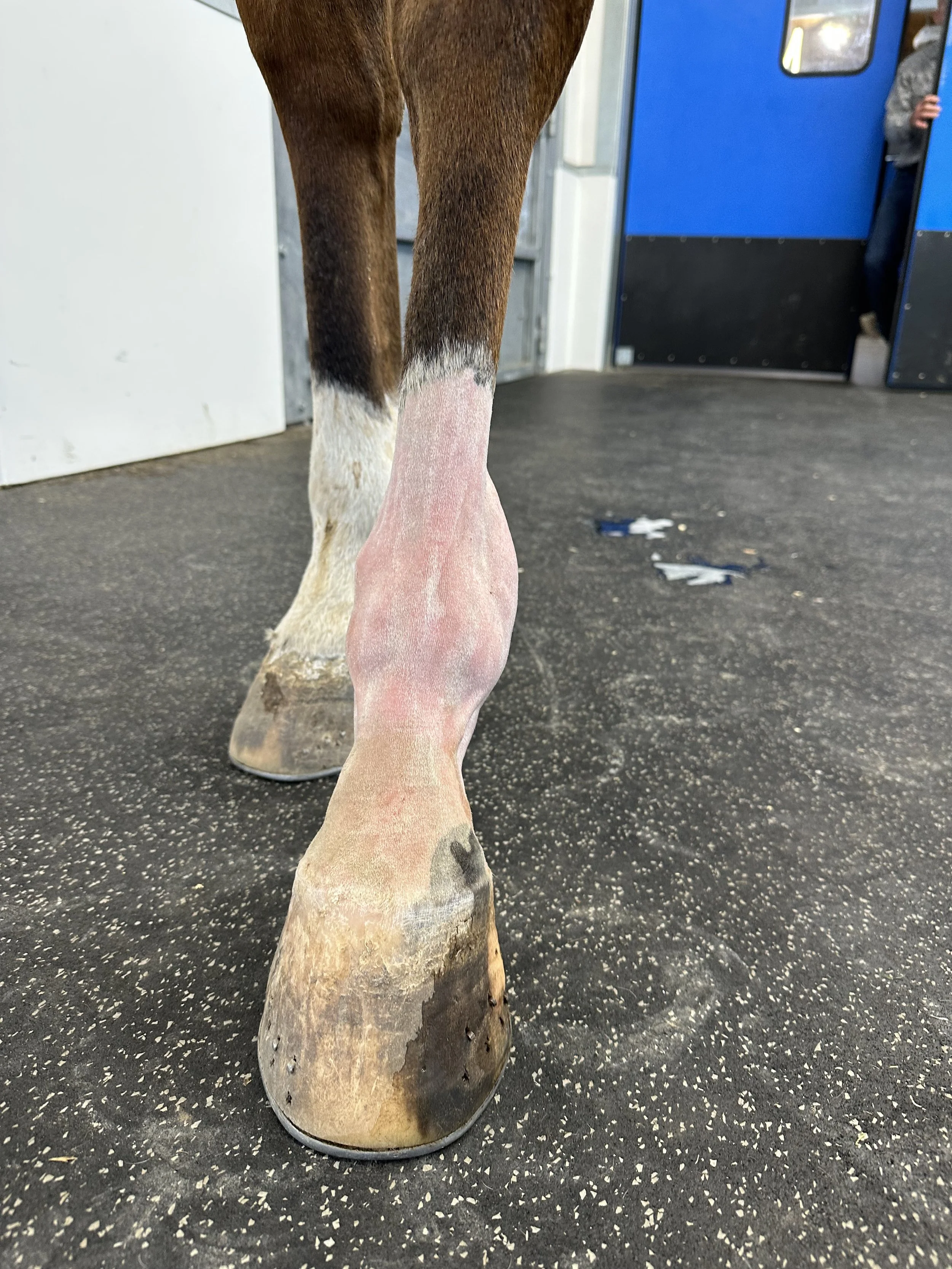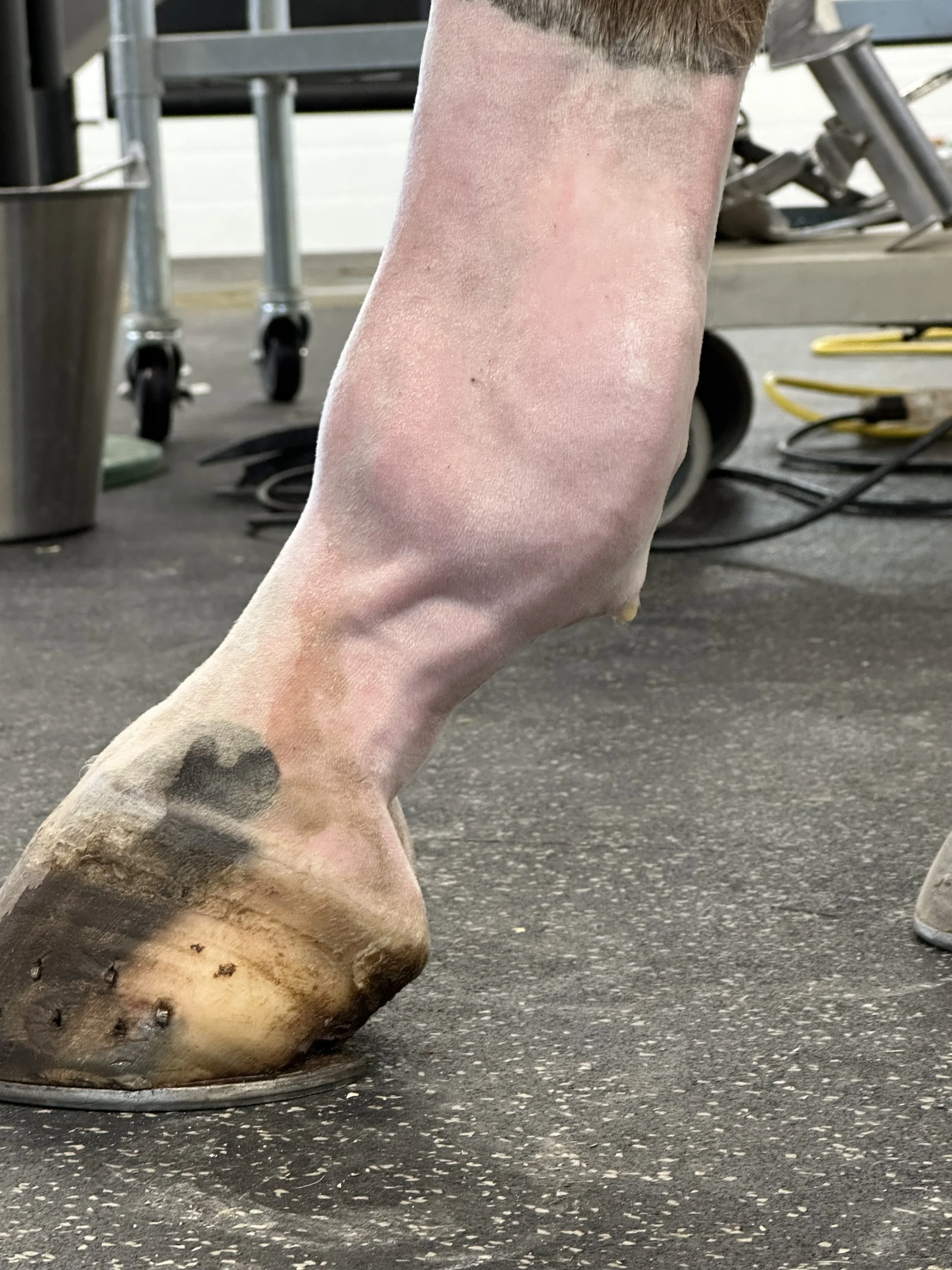 We received new radiographs and ultrasounds which show sesamoid fragments embedded in the suspensory ligament. Due to poor prognosis of surgery, limited comfort after injections, and age of the injury, we opted to rehabilitate his hoof angles to relieve stress to the fetlock in addition to a custom Acuscope and Myopulse treatment plan. He is currently sound doing light work and living outside.